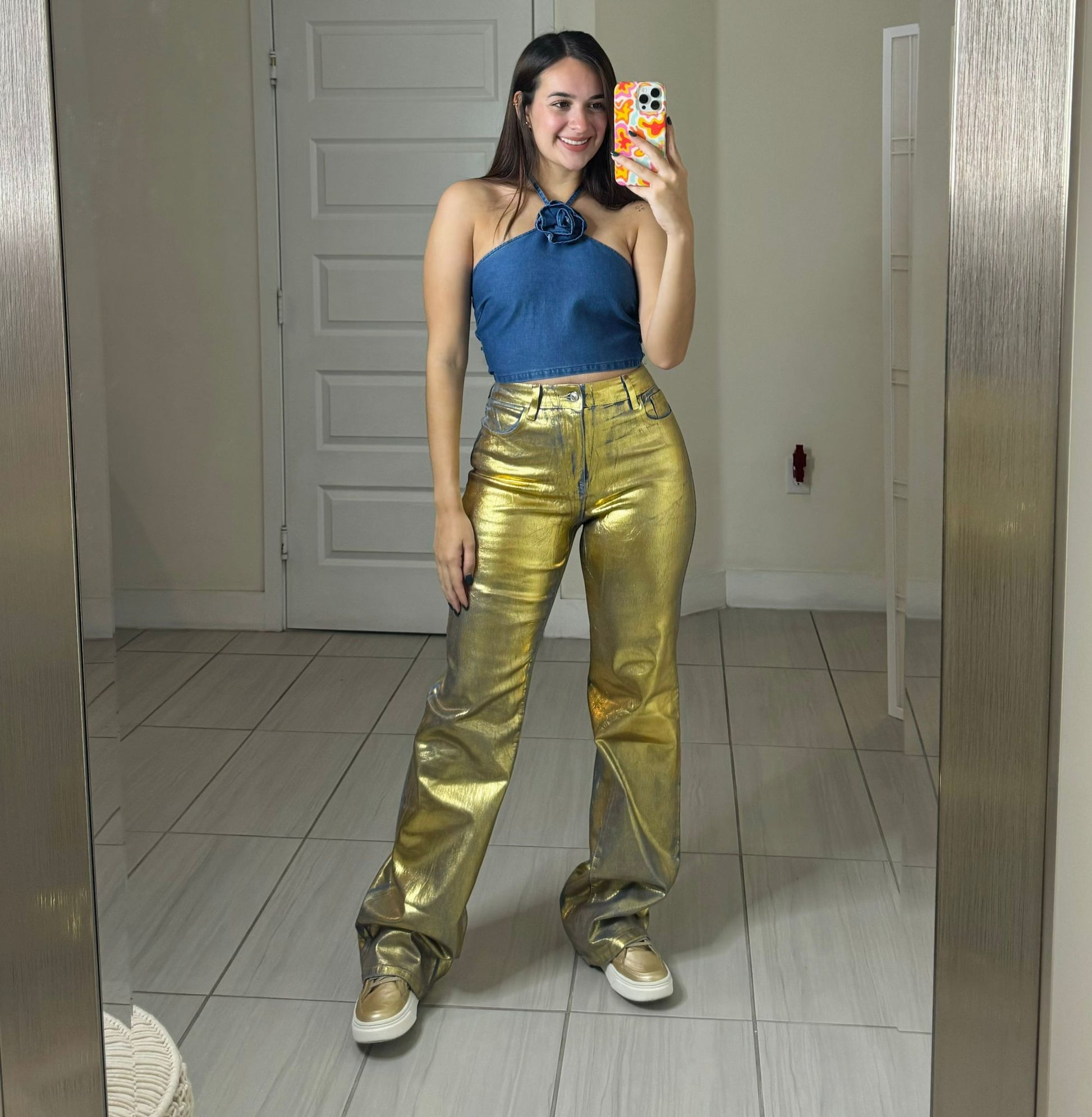 Elevate your style with the Ágata Top: A soft denim top with full spandex, available in S, M, and L sizes.