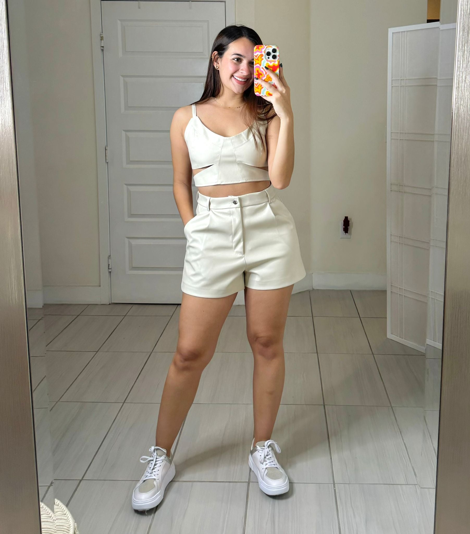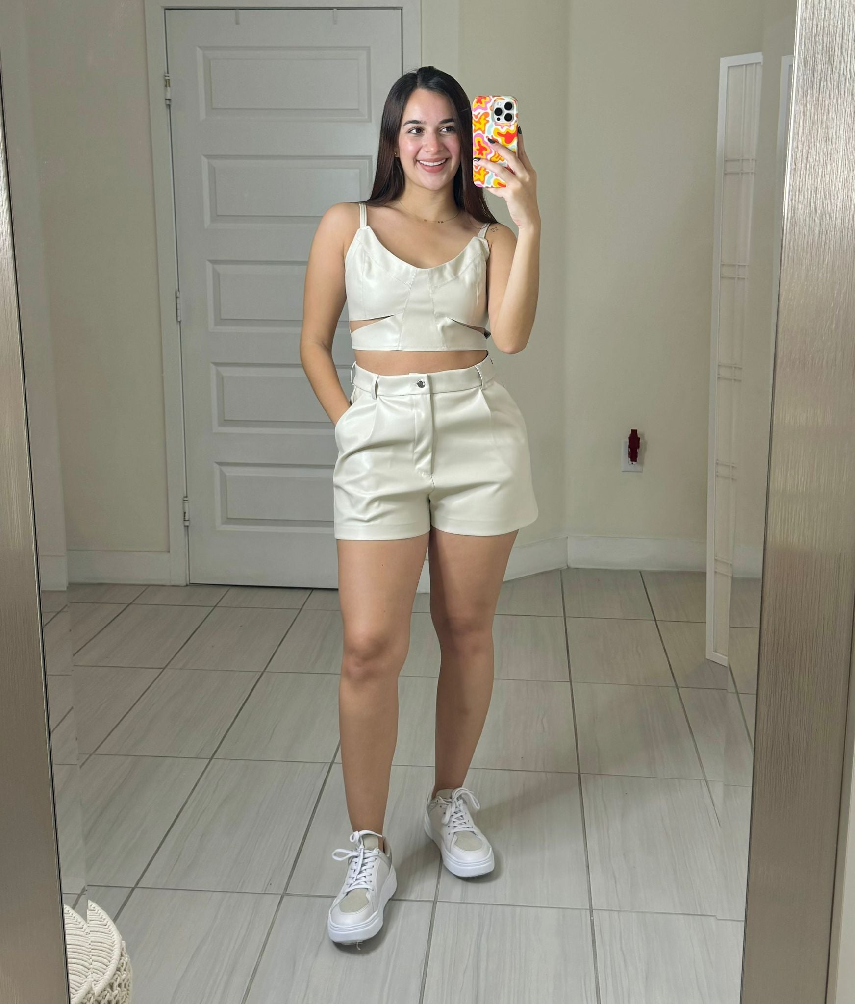 Aniella Leather Set: Short and top, true to size in S, M, L. Elevate your style with genuine leather.