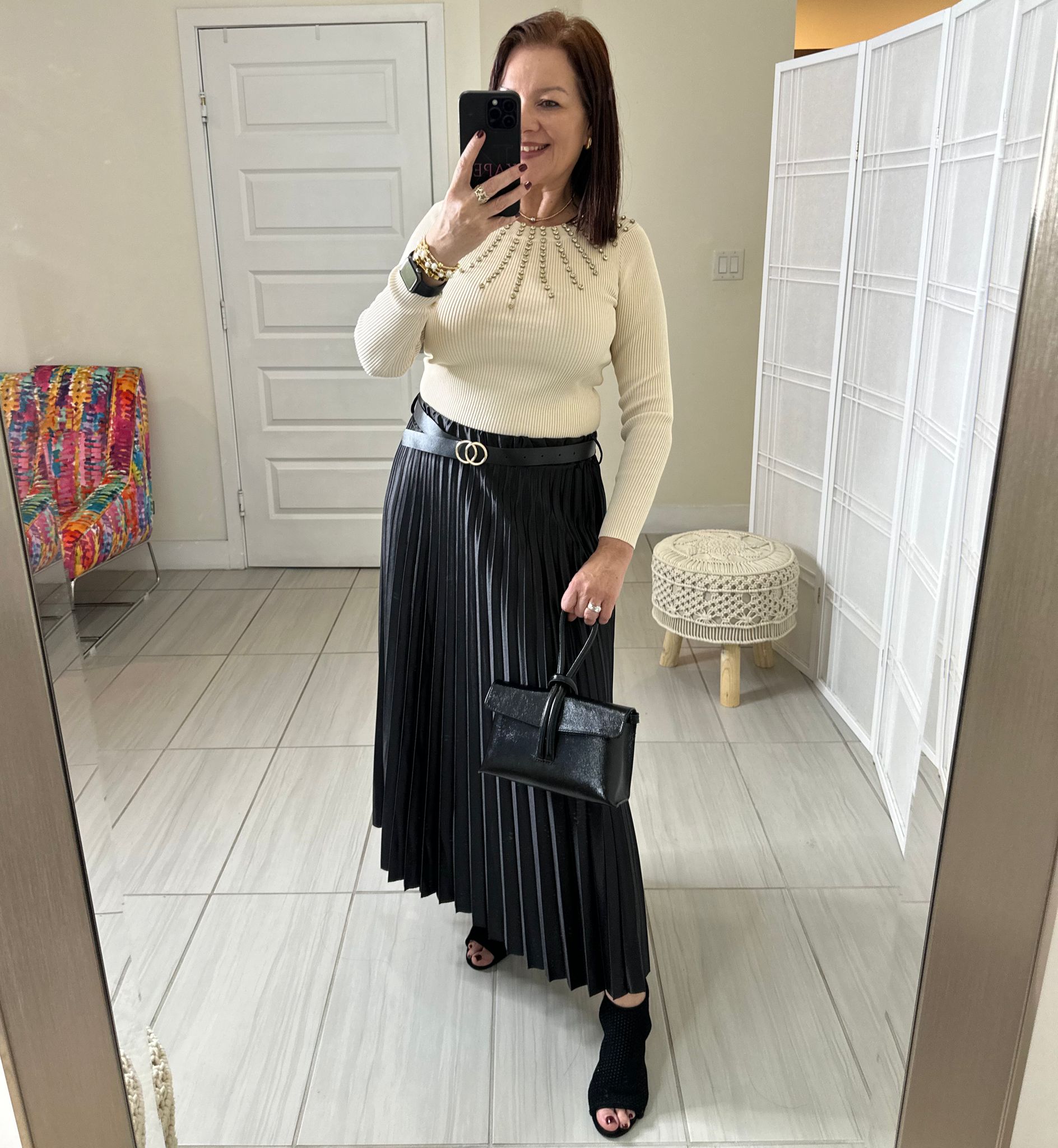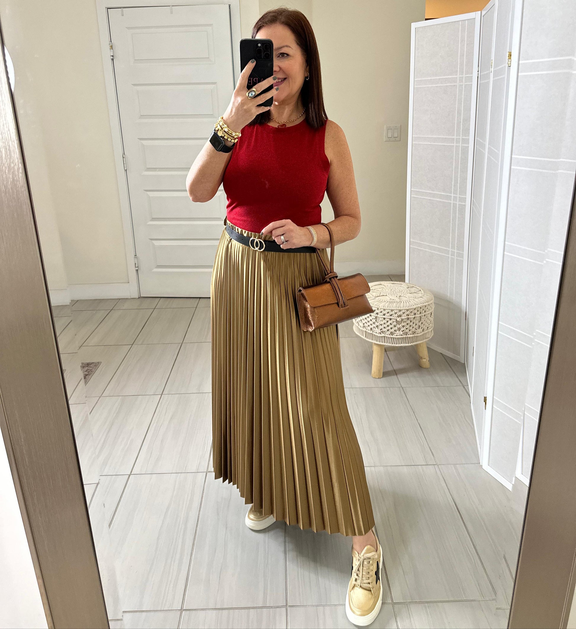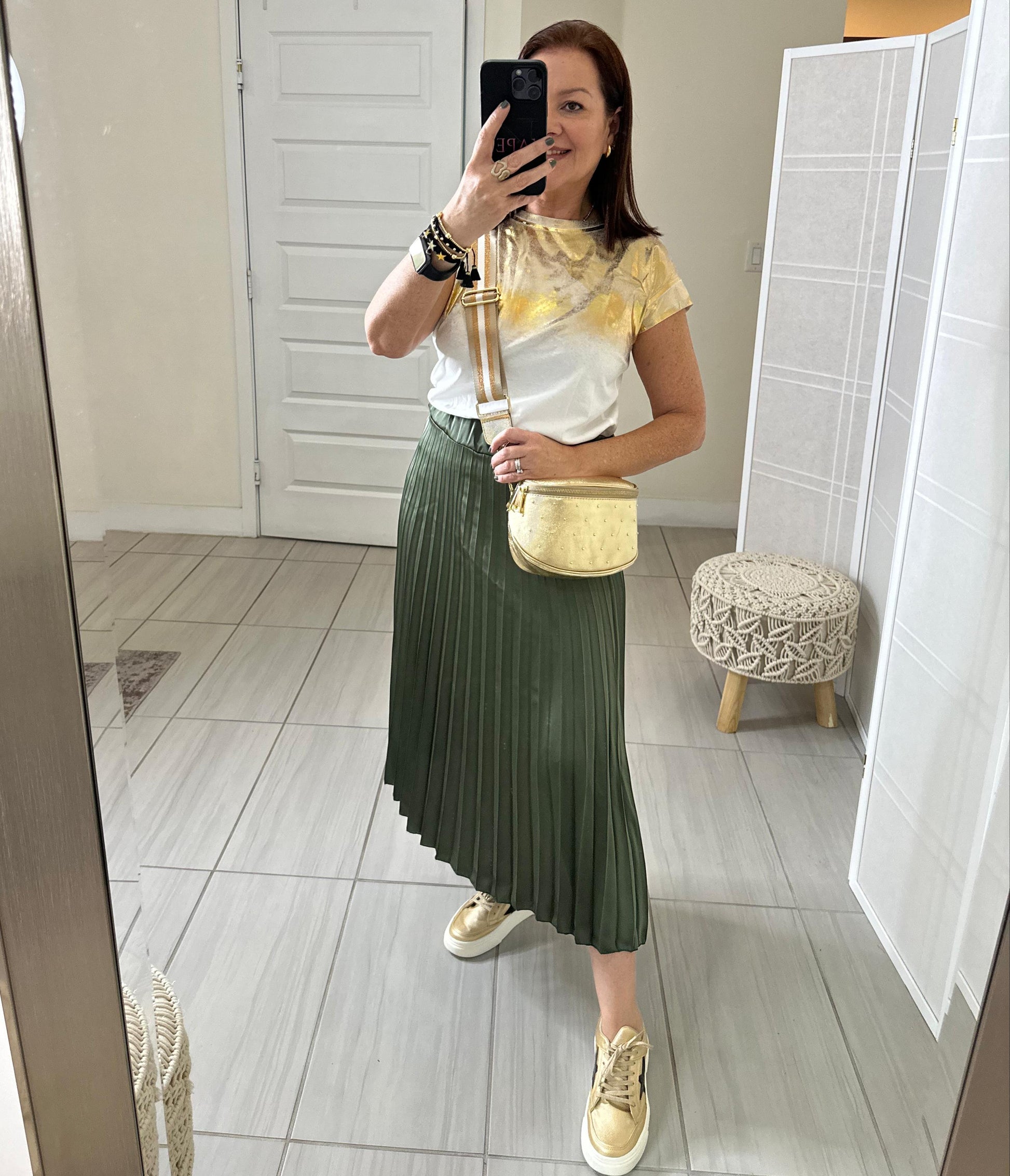Elevate your elegance with the Aurora Silk Skirt: Made in Italy, one size with an elastic waist, perfect from Small to Large, available in ocre, dark beige, and light beige.