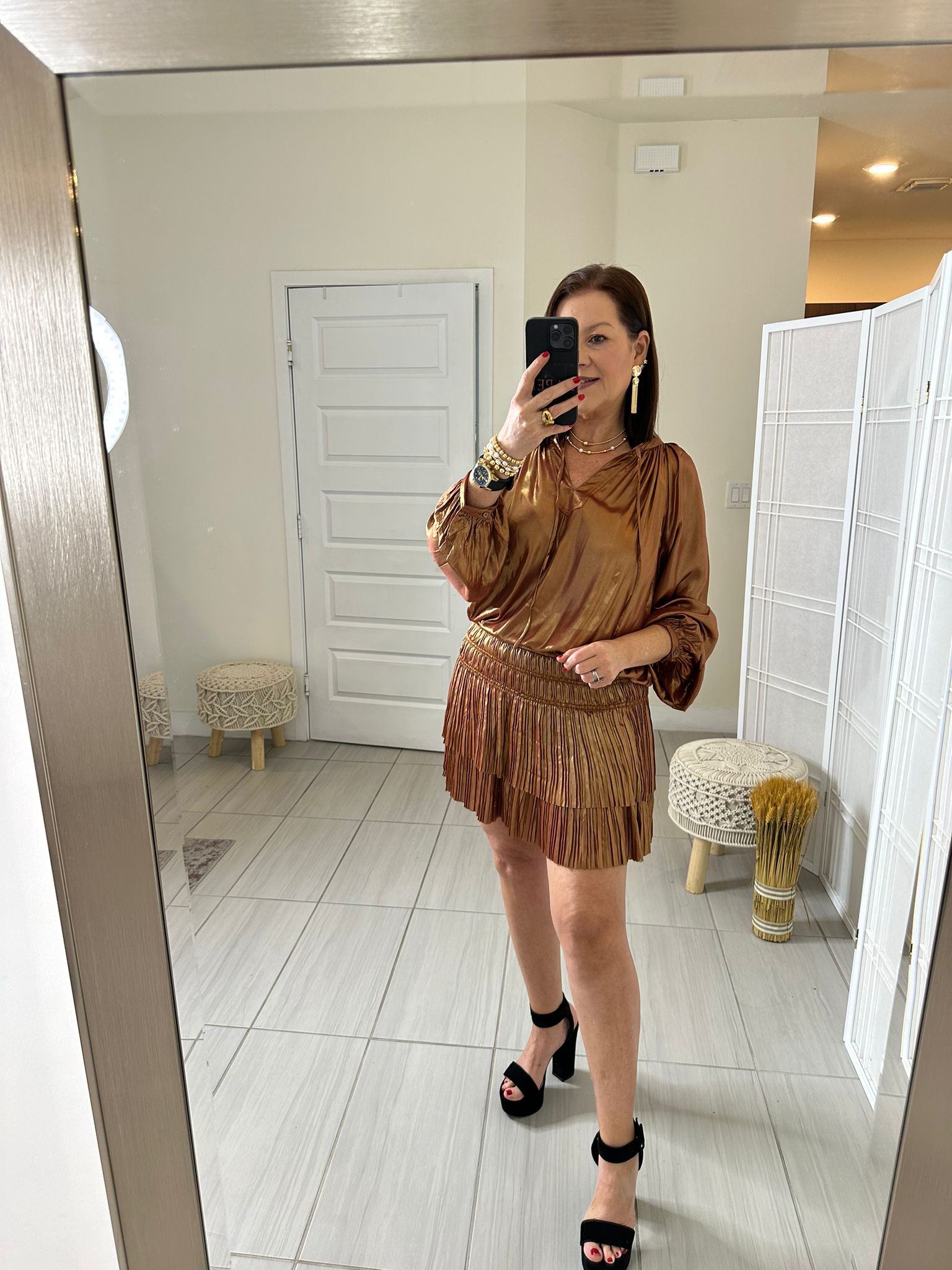 Get ready to shine in the Cindy Metallic Dress. Glamour meets elegance with a true-size fit and elastic waist.
