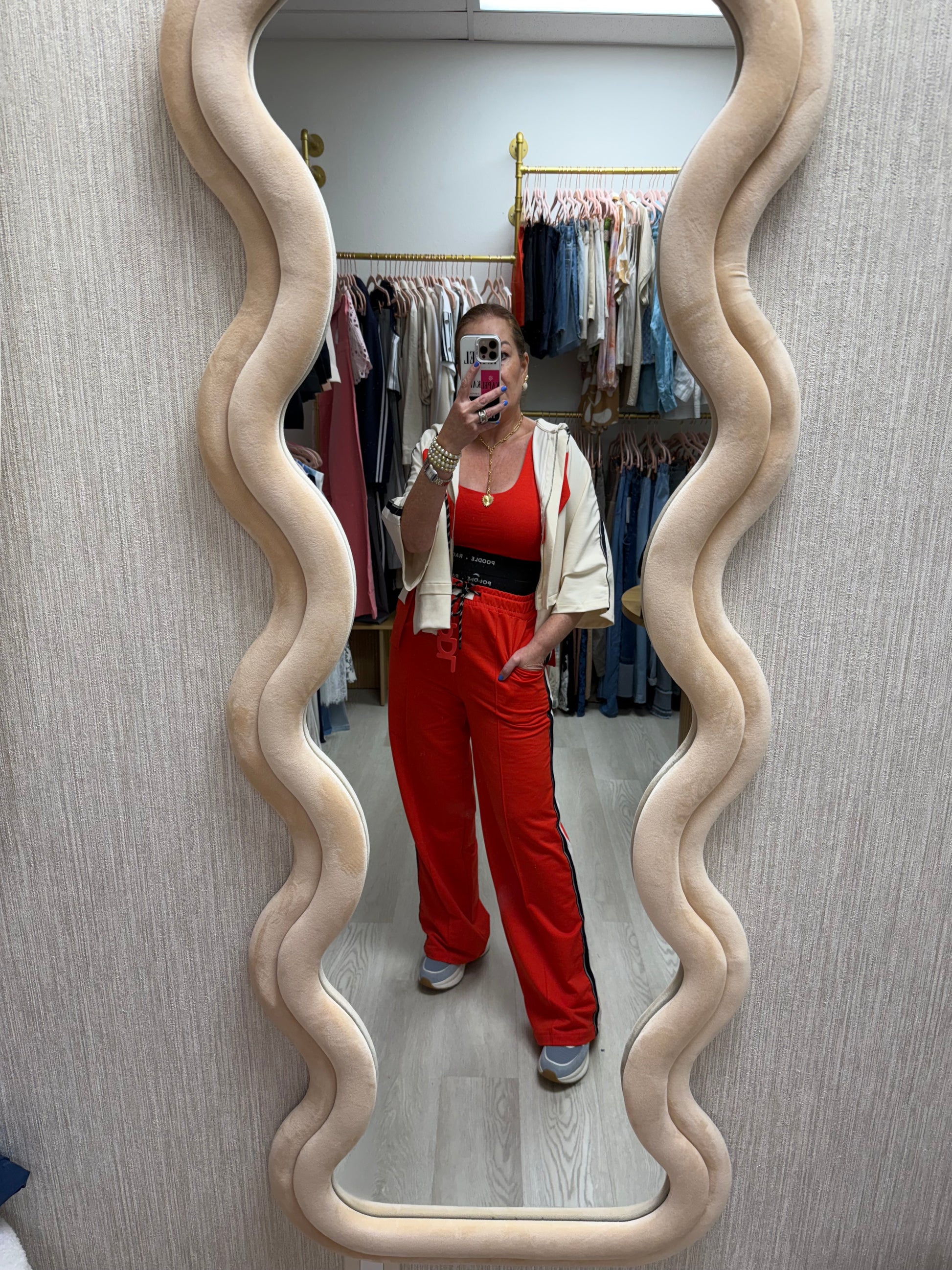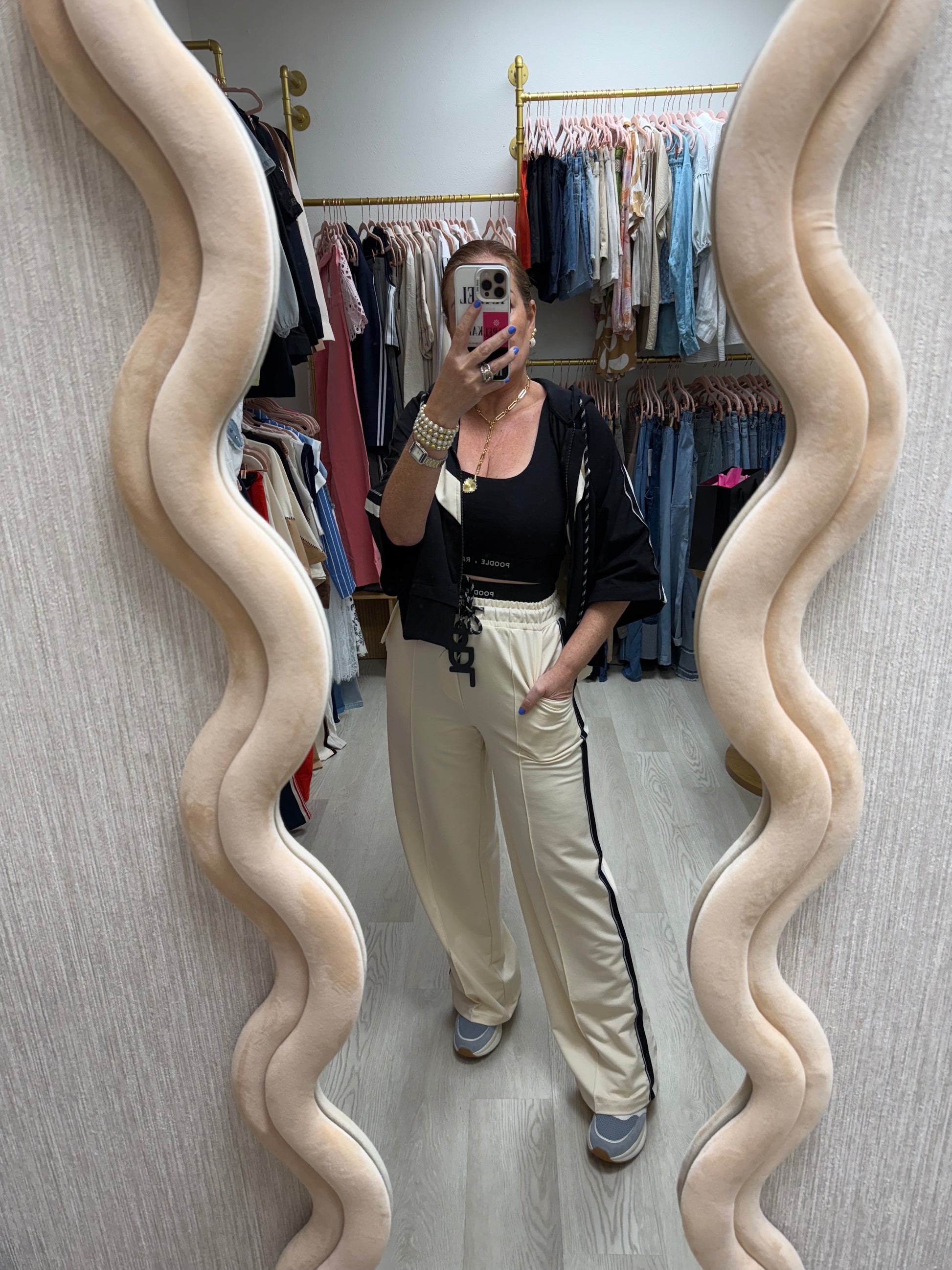 The Dafne Set is a premium 3-piece sports ensemble featuring a perfectly fitted top, jacket, and pants that stay true to size. Designed for both performance and style, this versatile set transitions seamlessly from workouts to casual outings. Experience comfort and confidence with this must-have athletic collection that flatters your figure while supporting your active lifestyle.