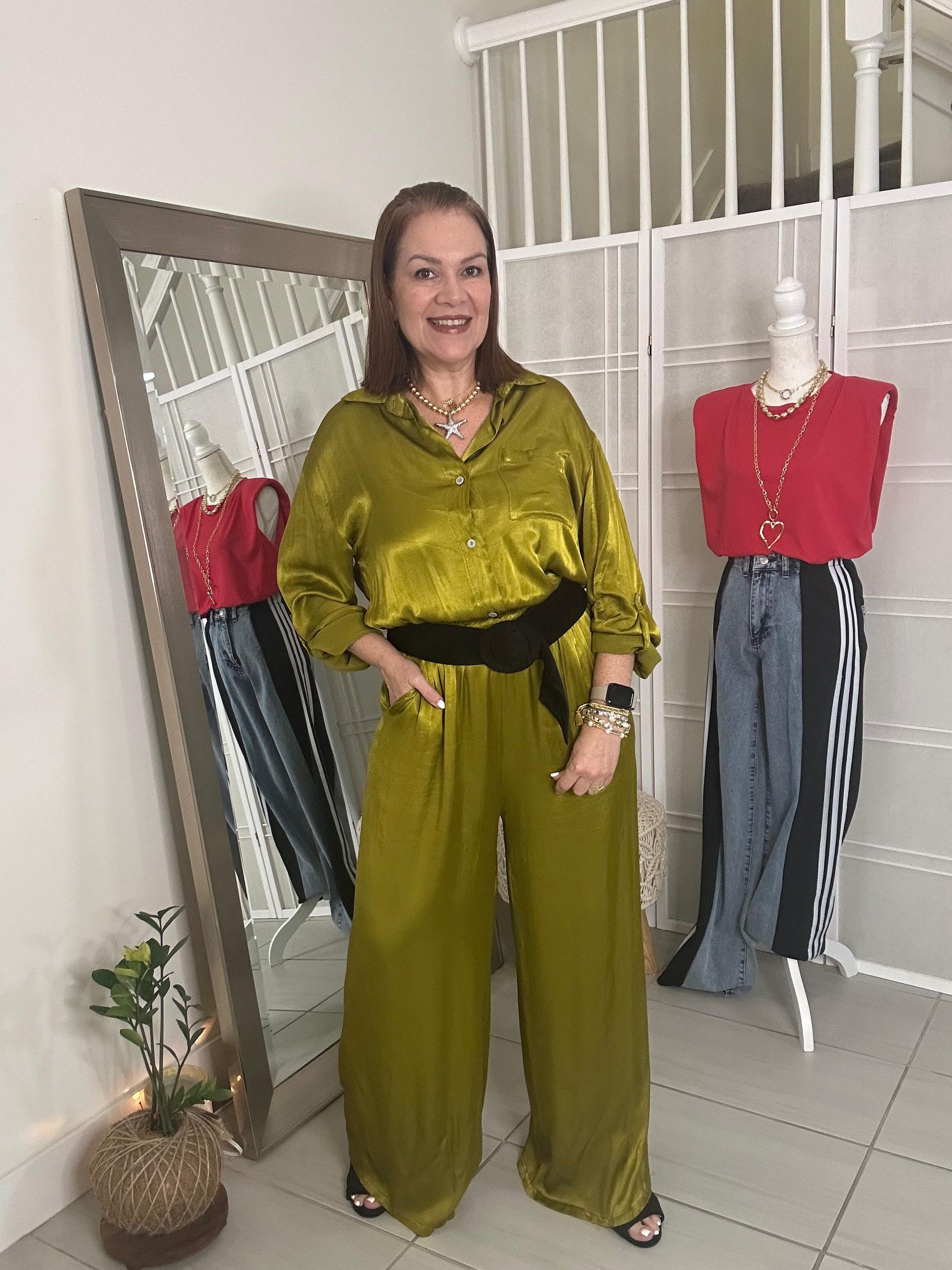 Experience effortless elegance in our Daniela Jumpsuit. Made of luxurious silk with an elastic waist for a comfortable fit, it's perfect for any size and shape. Make a statement wherever you go - get yours now!