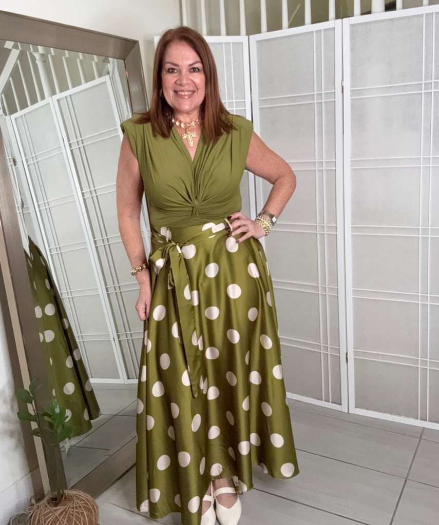 The Eloise Skirt is a timeless piece crafted from smooth silk, featuring a charming polka dot pattern. Its elastic waistband ensures a comfortable fit that adapts seamlessly to small, medium, and large sizes. Lightweight and elegant, this skirt flows beautifully for both casual outings and special occasions, offering effortless style and versatile wear.