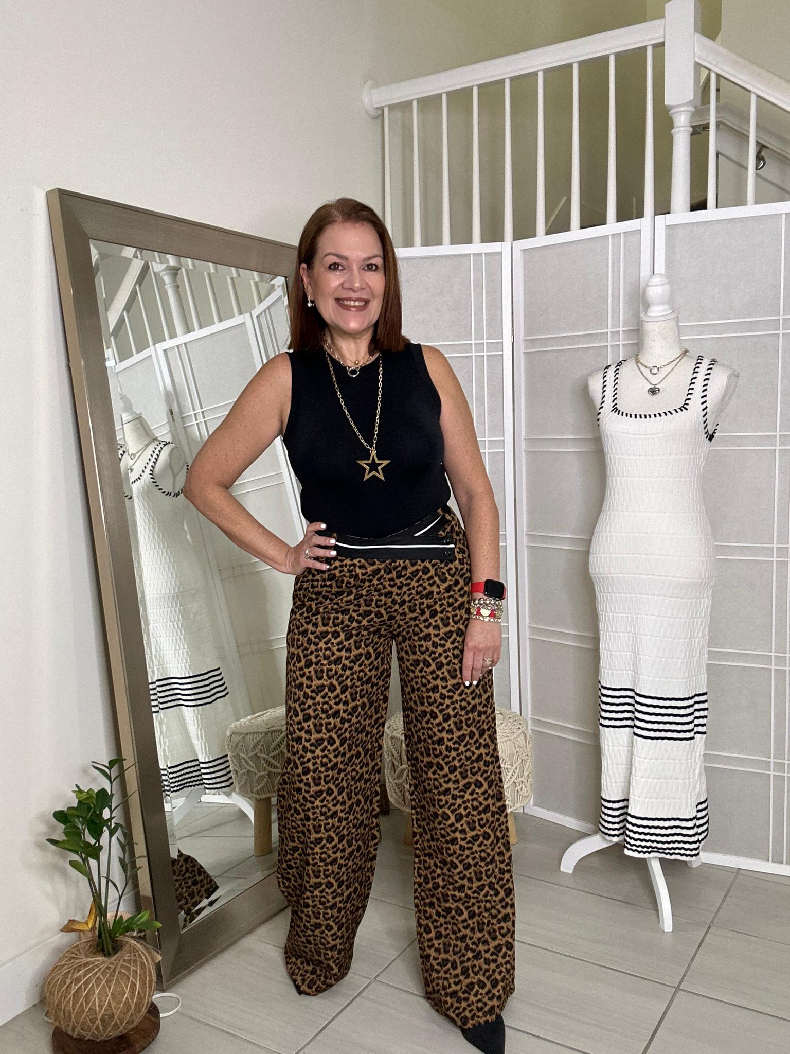 Add a fun and fierce touch to your wardrobe with our Karin Pants. These animal print pants are true to size and perfect for adding a statement to any outfit. Buy now and rock your wild side!