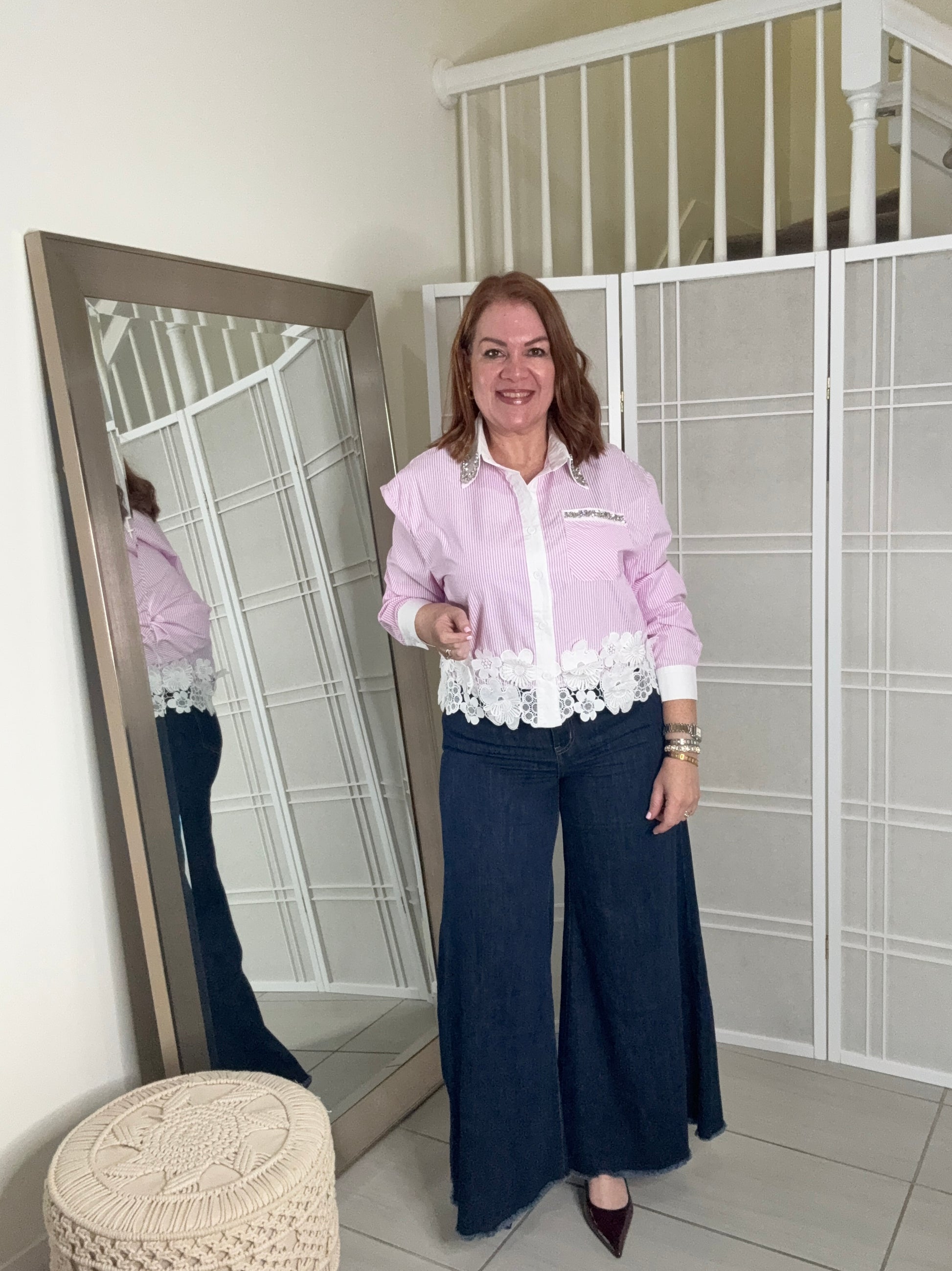 The Klau shirt, crafted from 100% cotton, offers a comfortable and breathable fit. Designed to true size, it ensures a reliable fit across a range of body types. The combination of lace and cotton adds a subtle elegance, making it suitable for both casual and semi-formal occasions.