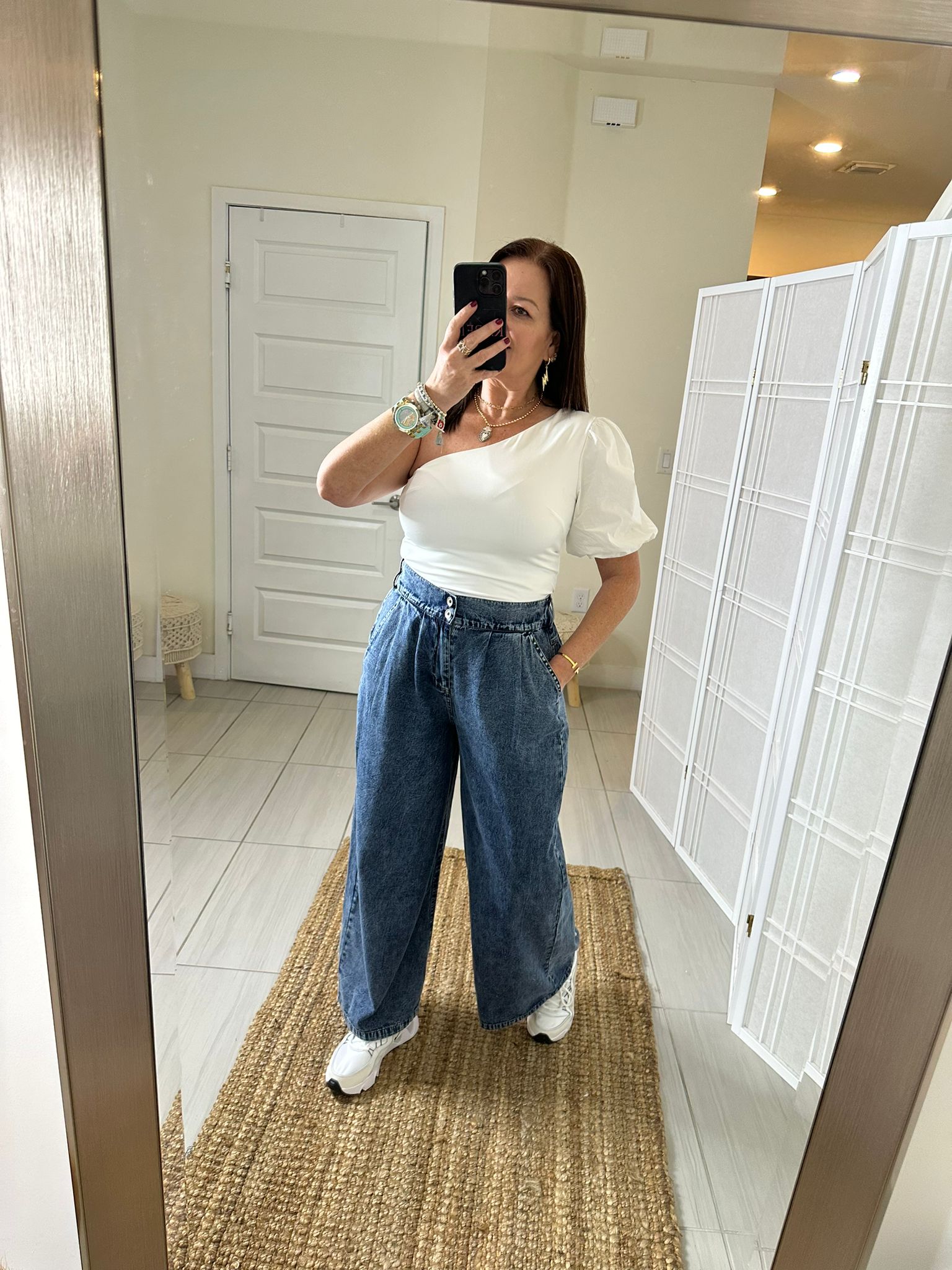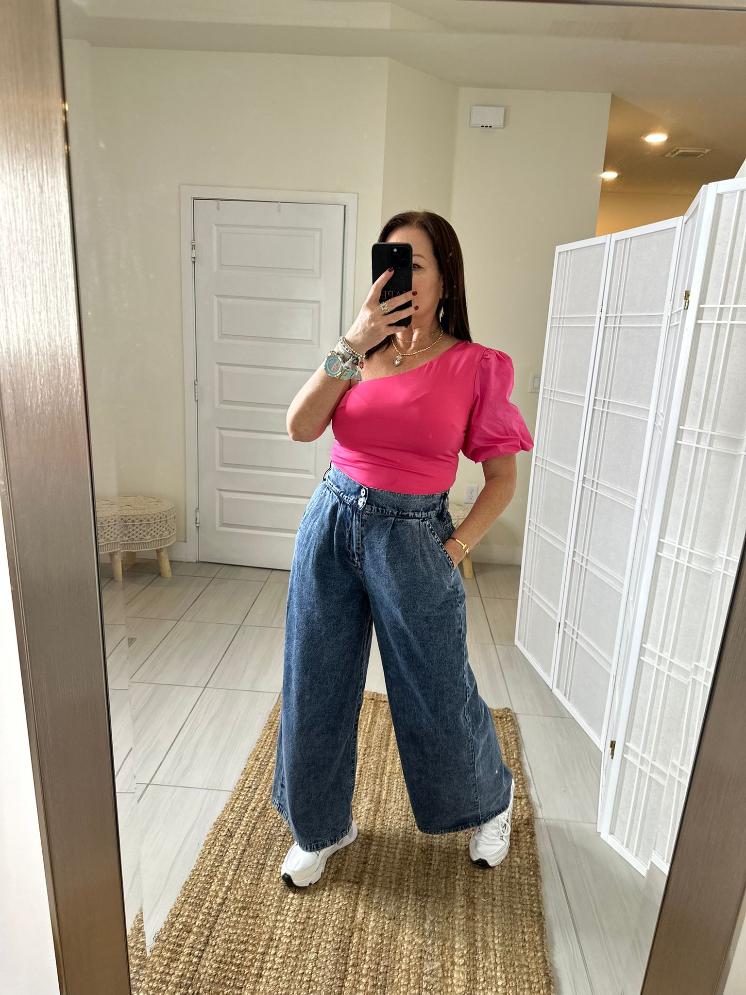 Step up your style game with Lucia half-shoulder top. Crafted from spandex lycra, available in true sizes S, M, L. Perfect fit for all occasions.