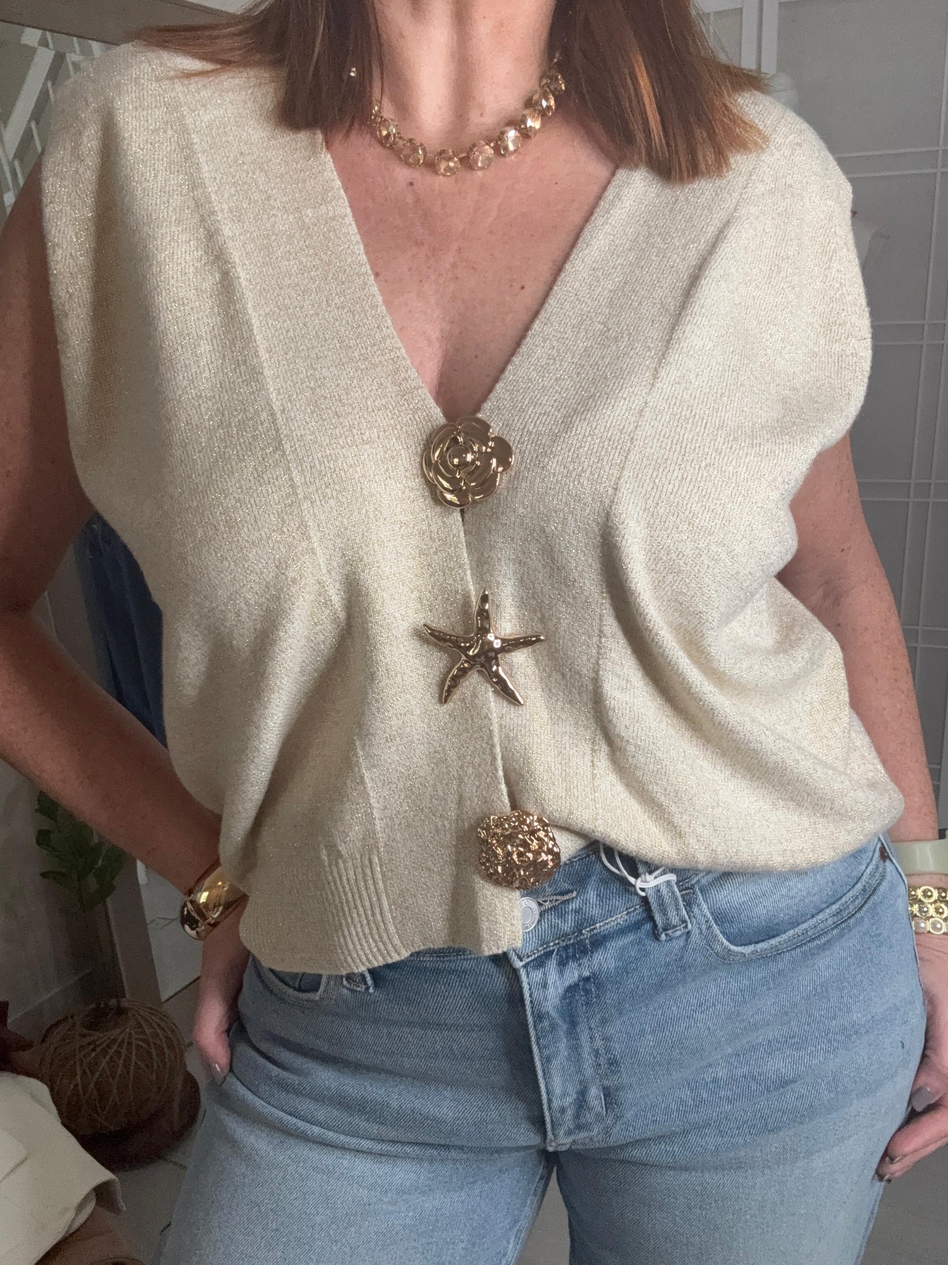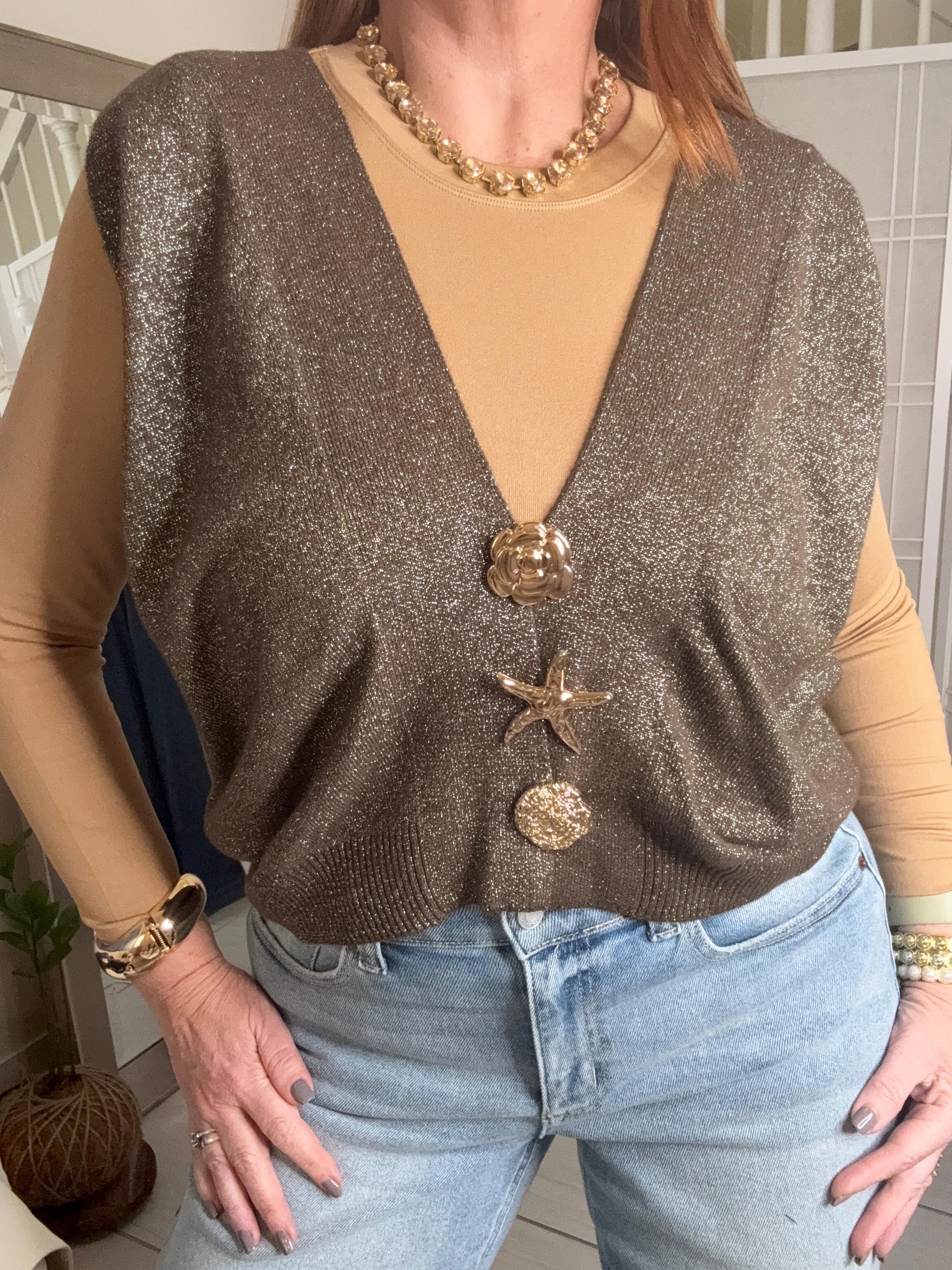 Elevate your style effortlessly with the Paola Vest, designed to fit sizes S, M, and L comfortably thanks to its versatile one-size design. Featuring removable decorative appliques, this luxury vest offers easy care without compromising on elegance. Perfect for layering, it adds a refined touch to any outfit while ensuring practicality.
