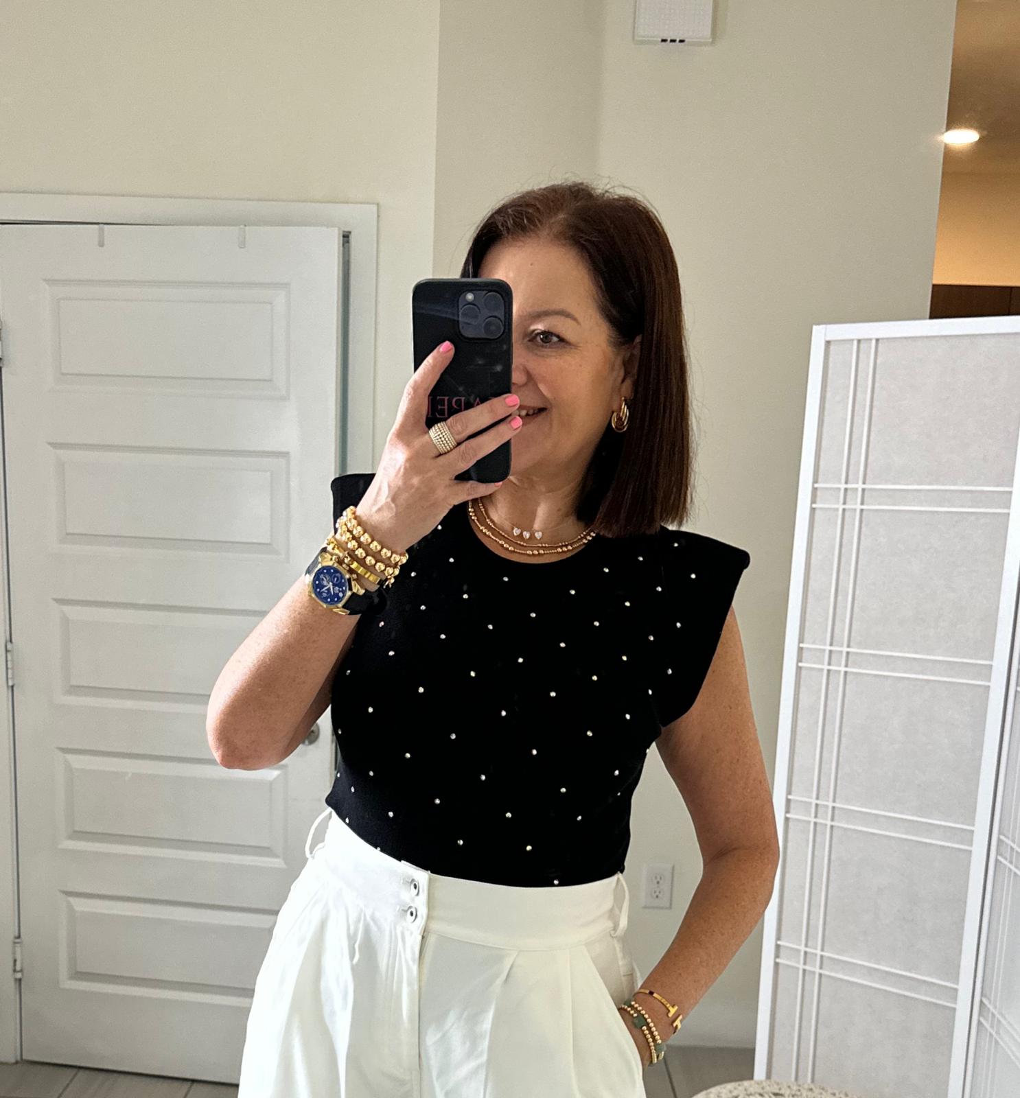 Shine in the Patty Body with dazzling embellishments. True-size spandex fit in S/M and M/L. Available in cream and black. Radiate confidence.