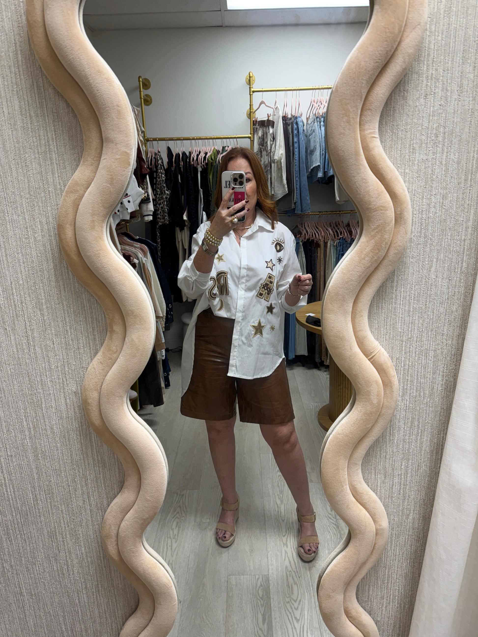 The Serena Short features a comfortable elastic waistband and is crafted from premium leather for a stylish, luxurious look. Its versatile one-size design fits sizes S, M, and L, making it an easy go-to piece for effortless dressing. Perfect for day-to-night wear, these shorts combine flexibility and sophistication seamlessly.
