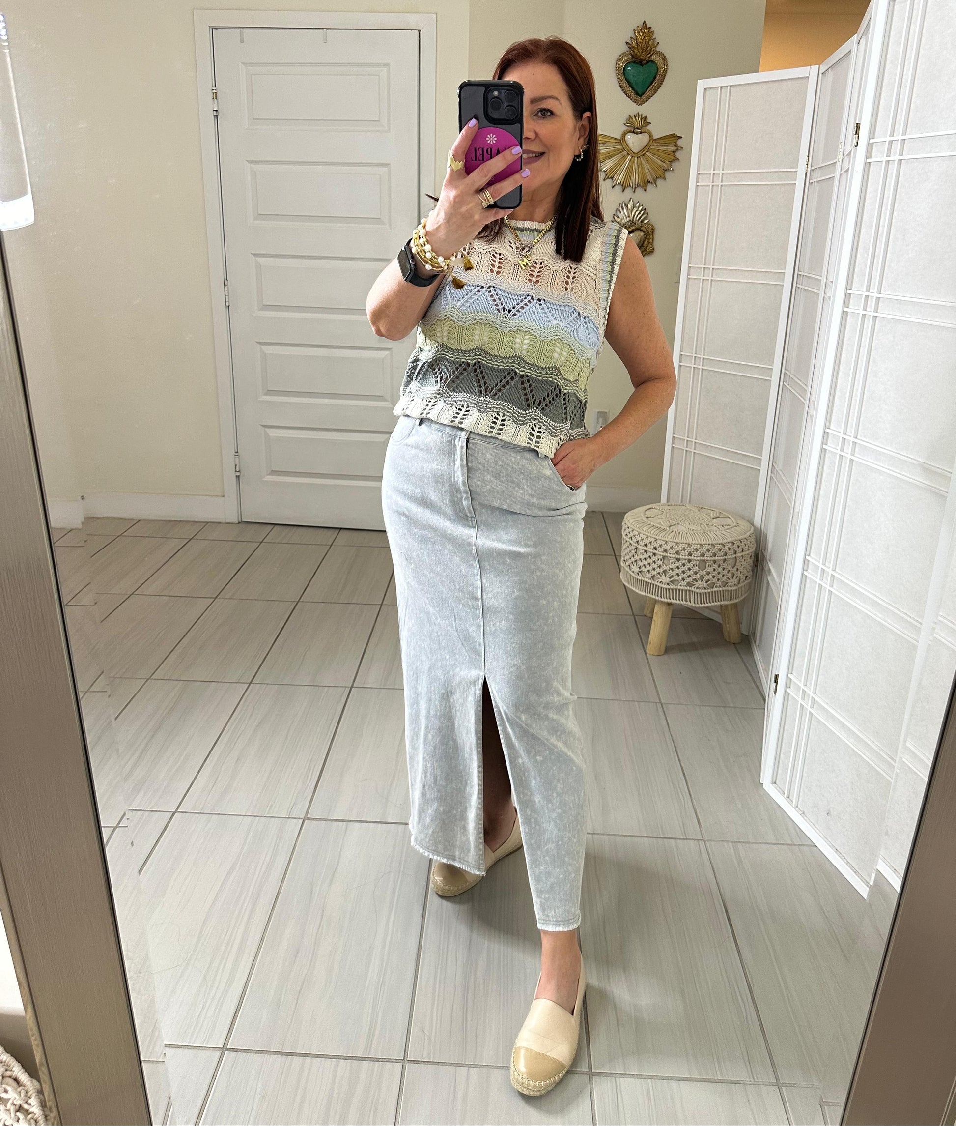 Full stretch, available in sizes S, M, L, and offered in blue and beige.